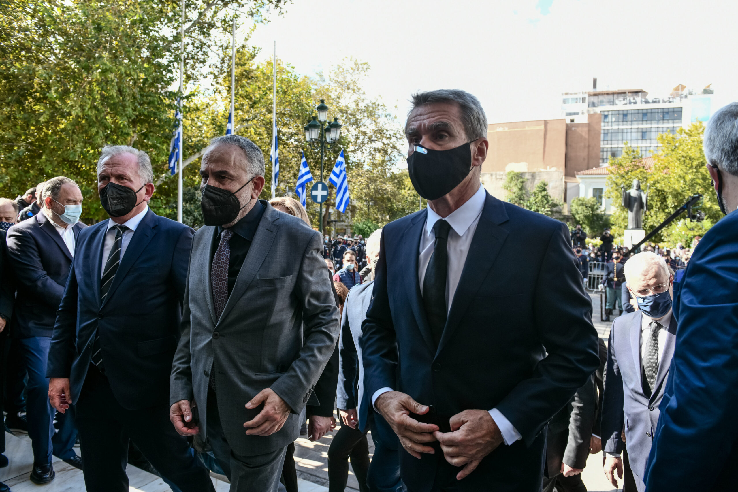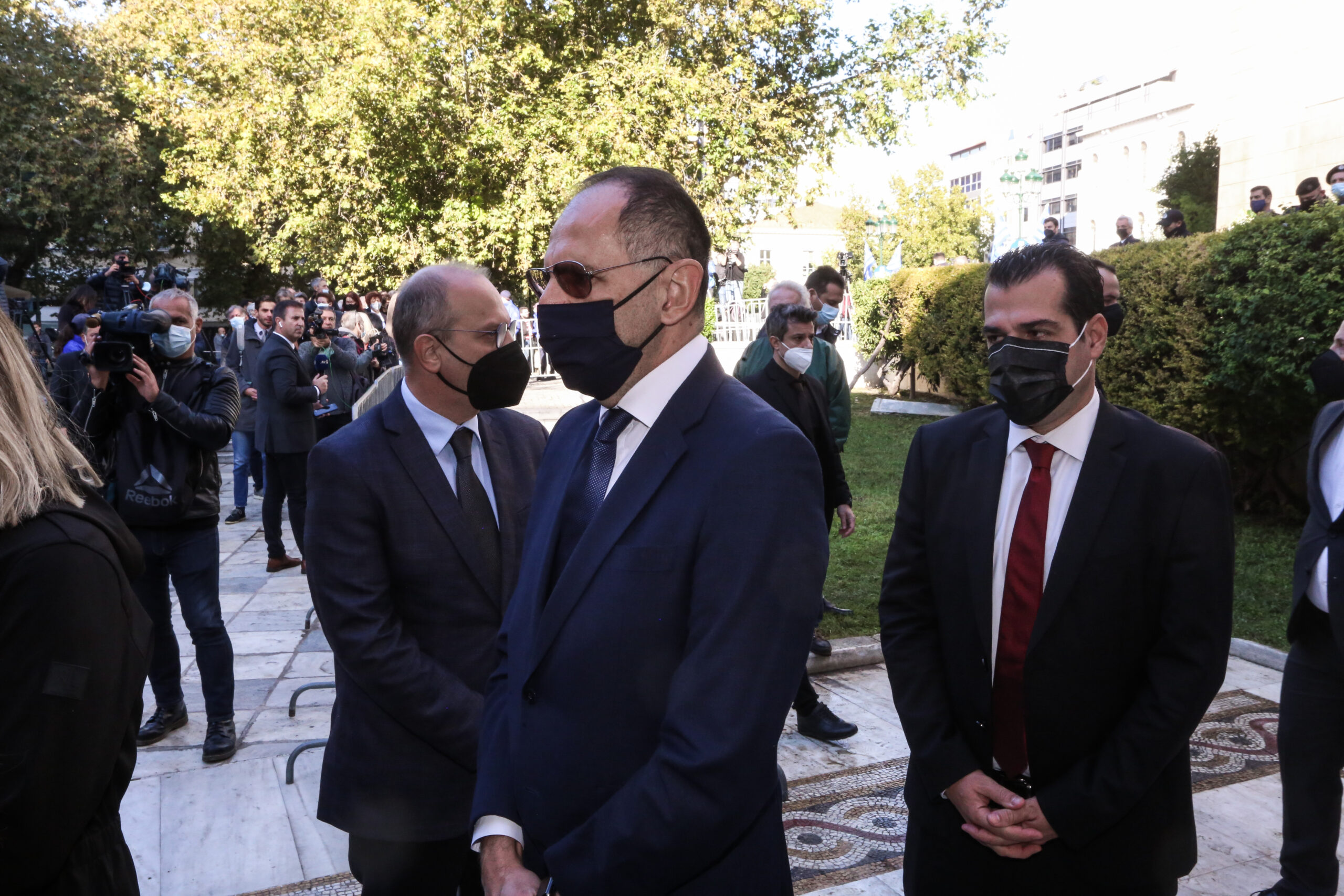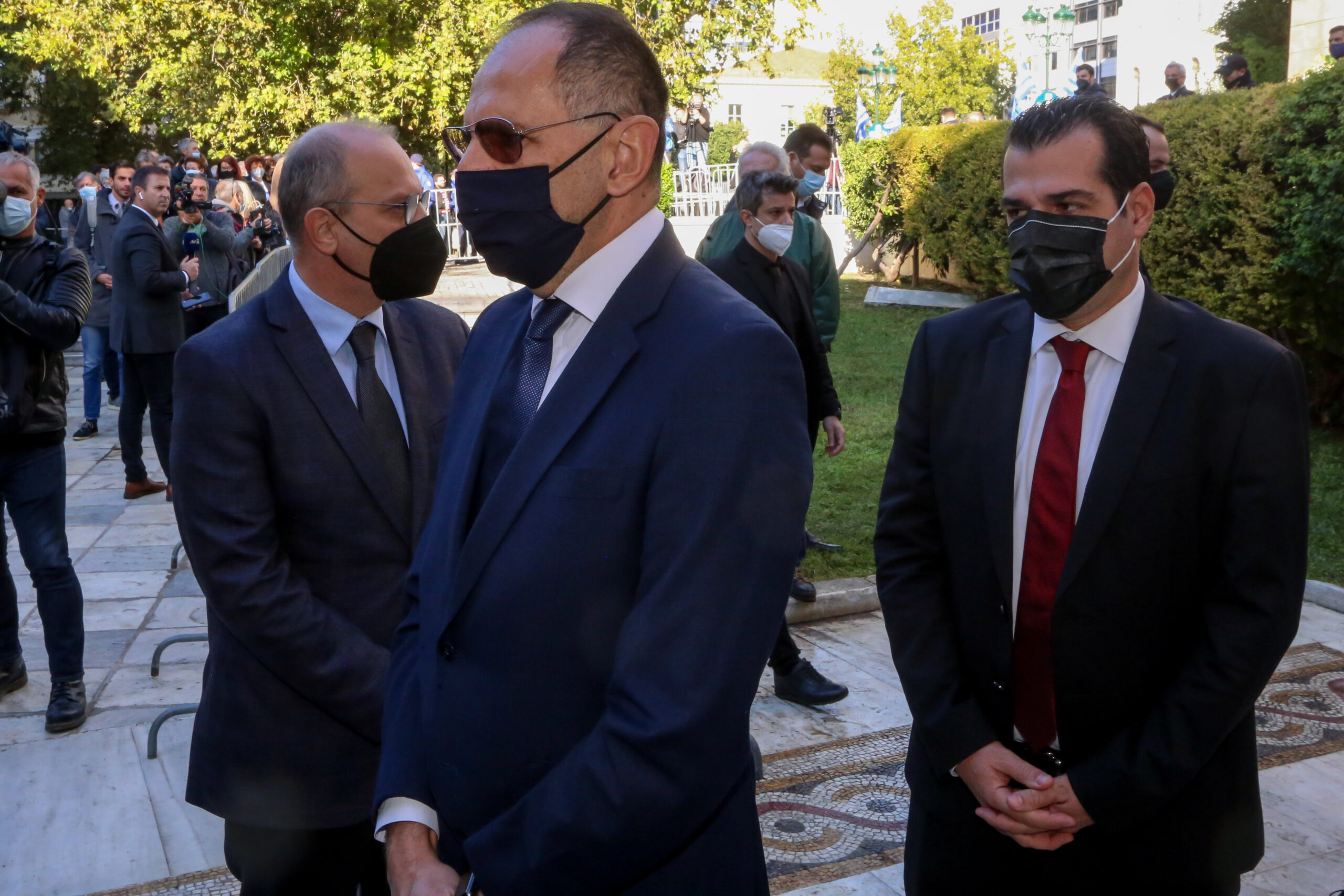 Αμέσως μετά στο παρεκκλήσι βρέθηκε ο υπουργός Επικρατείας Γιώργος Γεραπετρίτης, ο κυβερνητικός εκπρόσωπος Γιάννης Οικονόμου και ο υπουργός Υγείας Θάνος Πλεύρης.
