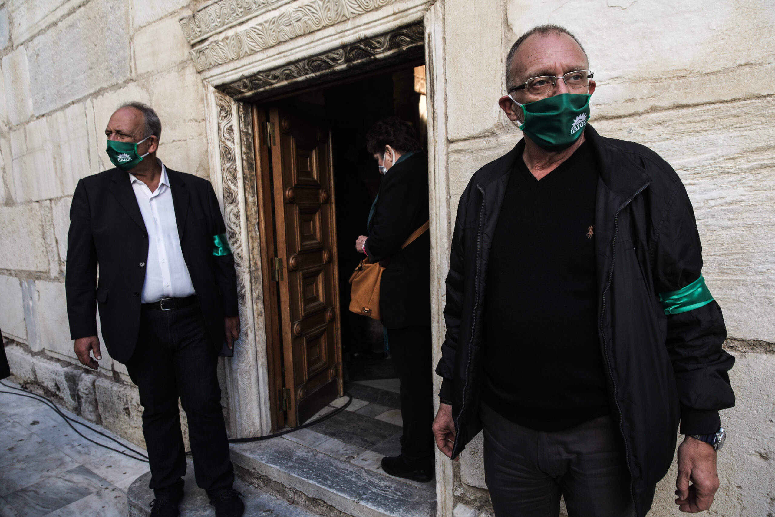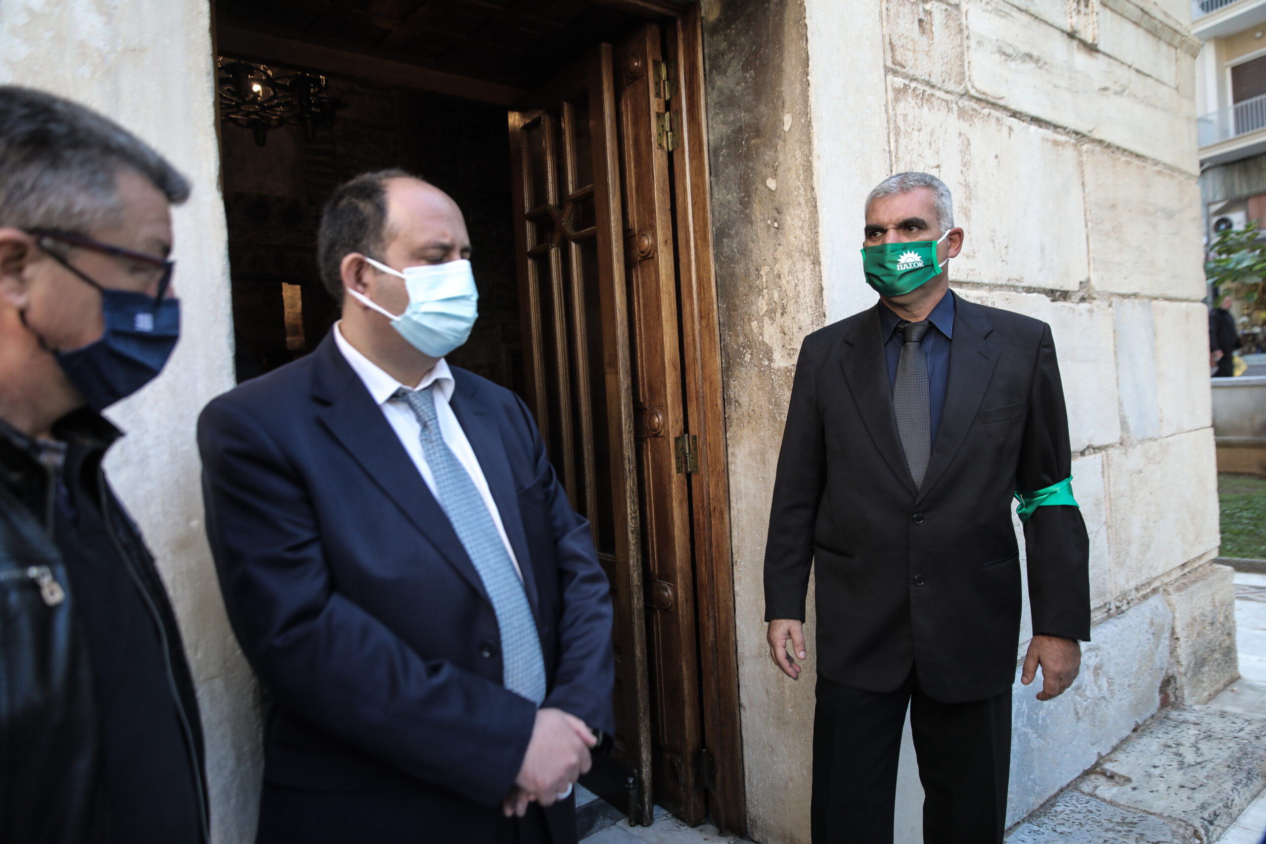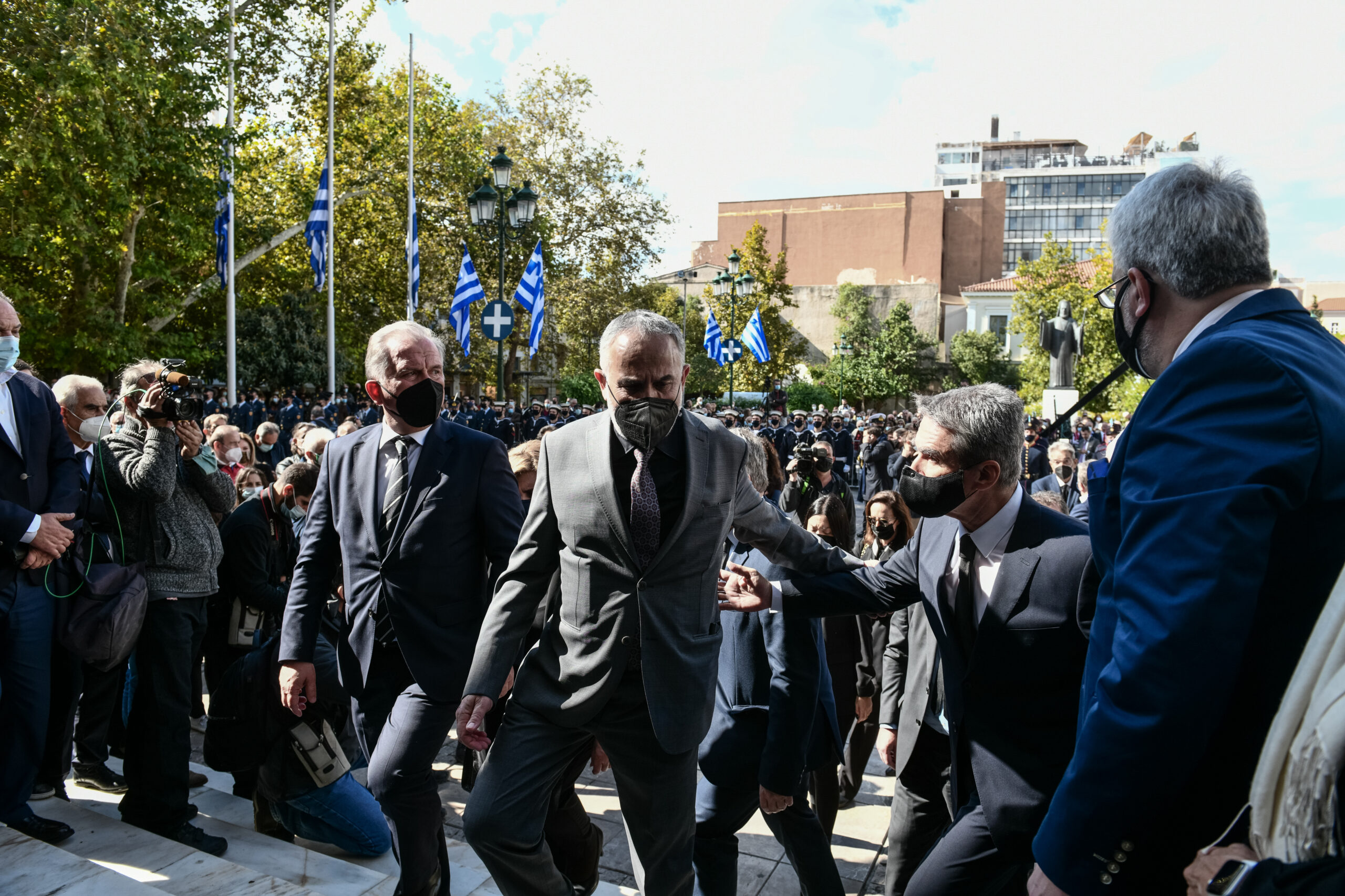 Αμέσως μετά στο παρεκκλήσι βρέθηκε ο υπουργός Επικρατείας Γιώργος Γεραπετρίτης, ο κυβερνητικός εκπρόσωπος Γιάννης Οικονόμου και ο υπουργός Υγείας Θάνος Πλεύρης.