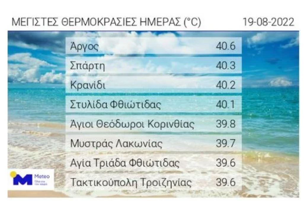 Η υψηλότερη μέγιστη θερμοκρασία καταγράφηκε στα Δίκαια Έβρου και στα Πλατανούλια Λάρισας και ήταν ίση με 22,6 βαθμούς Κελσίου. Οι επόμενες υψηλότερες μέγιστες θερμοκρασίες καταγράφηκαν σε Μακρακώμη Φθιώτιδας (22,4), Μουριές Κιλκίς (22,2) και Τρίκαλα (22,1).