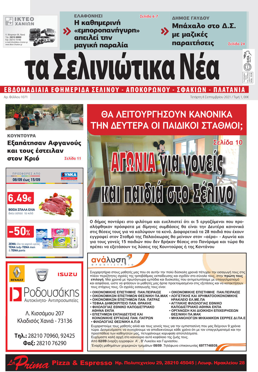 Κοινοποίηση Facebook Twitter LinkedIn Pinterest Email Copy Link Δείτε το πρωτοσέλιδο της τοπικής εφημερίδας «Σελινιώτικα Νέα» "Σελινιώτικα Νέα"