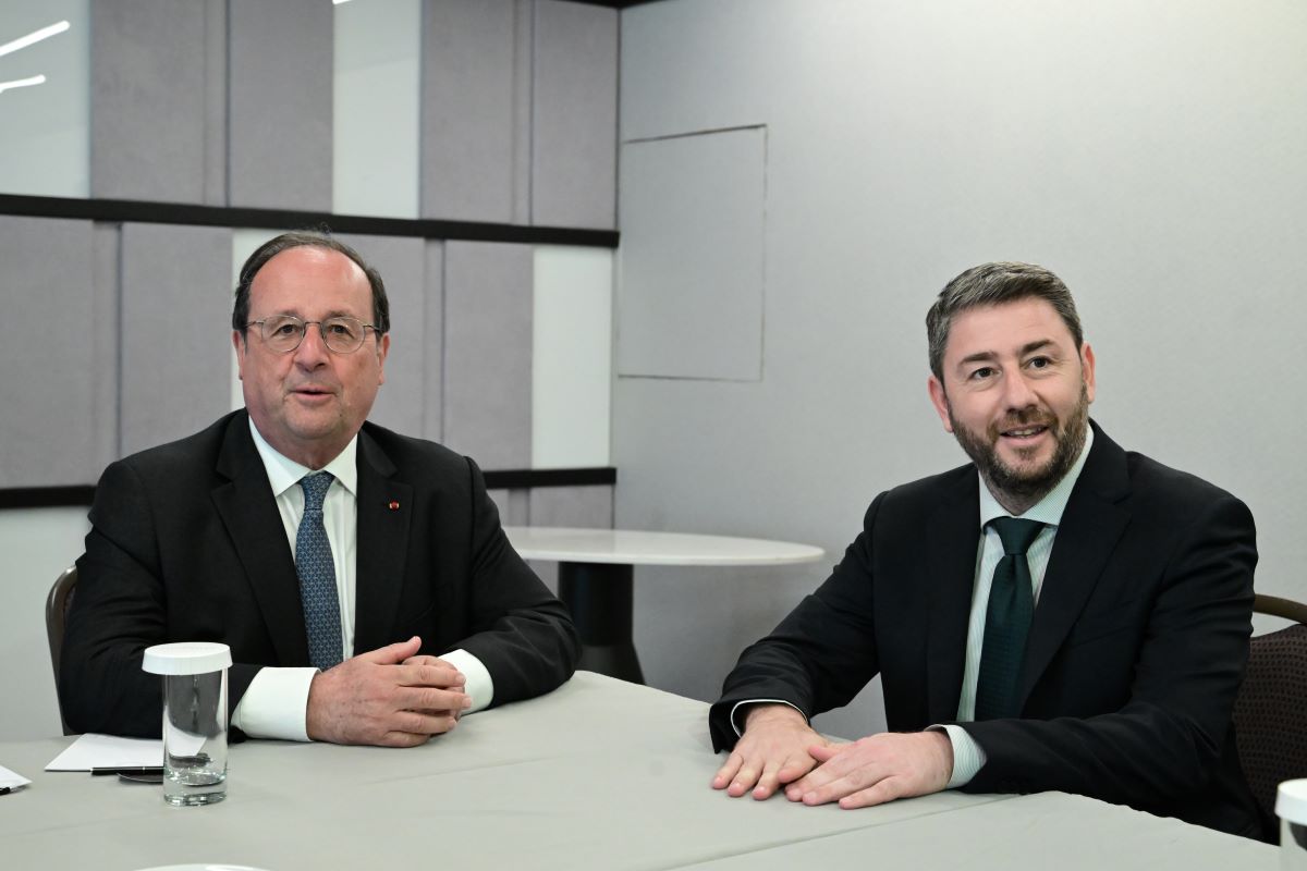Στο περιθώριο του συνεδρίου του Economist και της ΓΣΕΒΕΕ για τις μικρομεσαίες επιχειρήσεις, ο πρόεδρος του ΠΑΣΟΚ-Κινήματος Αλλαγής, Νίκος Ανδρουλάκης, συναντήθηκε με τον πρώην Πρόεδρο της Γαλλίας, Φρανσουά Ολάντ.